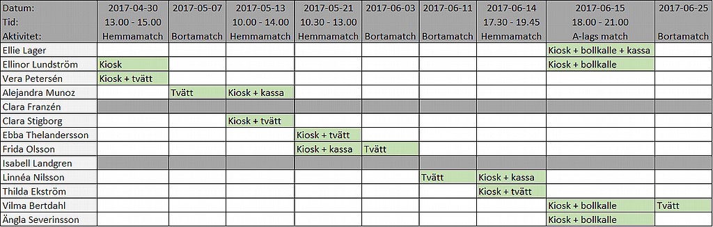 Vi har satt ihop kiosk- och tvättschema för vårens aktiviteter.
