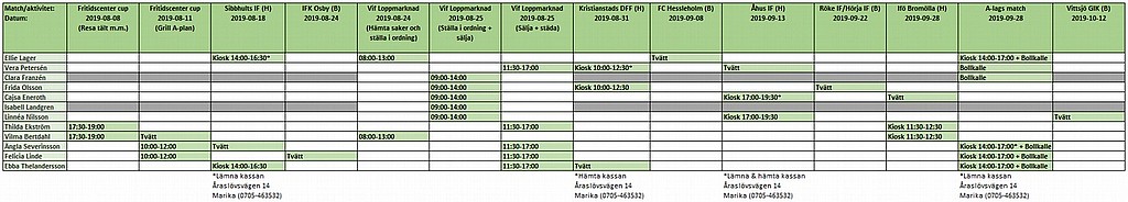 Ps. Hade glömt att det ska vara 4 föräldrar på A-lagsmatcherna. Uppdaterat schemat med detta (2019-07-24).