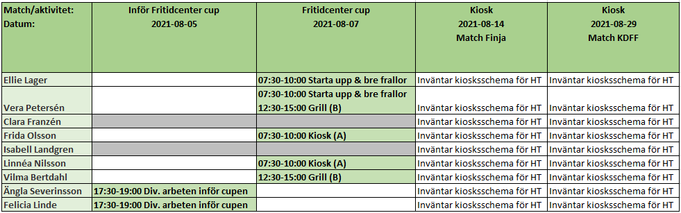Kioskschema Fritidscenter Cup 2022 13-14/8